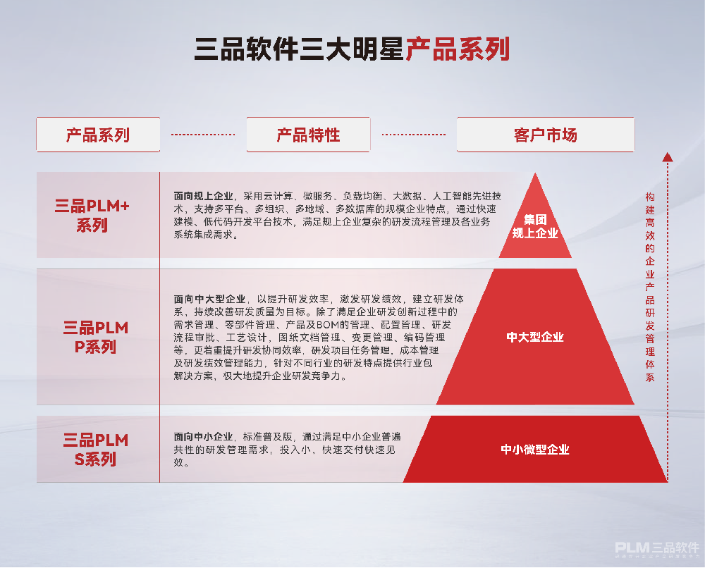 在制造业数字化转型加速推进的当下,产品研发管理的效率与质量直接决定企业的市场竞争力。面对市场上品类繁多的PLM系统,企业往往陷入选型困境——既要满足全流程数据管控需求,又要适配行业特性与国产化要求,还要兼顾系统安全性与协同效率。三品PLM软件凭借在数据管理、流程协同、跨系统集成等维度的深度打磨,逐渐成为众多制造企业的首选解决方案。其以“全生命周期数据贯通”为核心,覆盖从产品概念设计到退市报废的完整链路,为不同规模、不同行业的企业提供了可落地的研发管理数字化路径。
